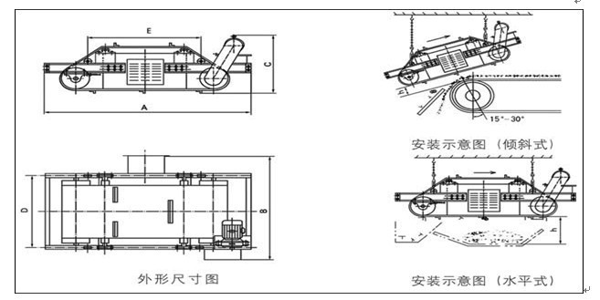 RCDD自卸式電磁除鐵器安裝示意圖: